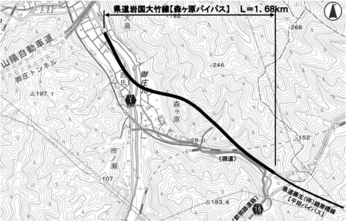 山口県発表資料より 山口県では、県道岩国大竹線森ヶ原バイパス(延長1.68km)が2020年3月22日(日)16時に開通します。