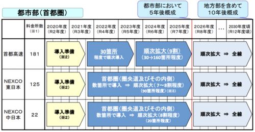 首都高速道路株式会社発表資料より首都高では34ヶ所が対象のようで、2022年3月1日から5箇所、2022年4月1日から29箇所で運用が開始されるそうです。