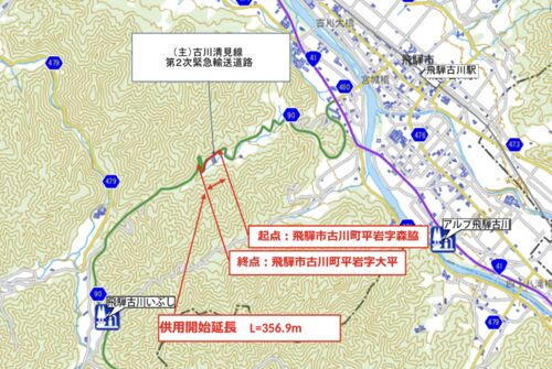 岐阜県飛騨市発表資料より岐阜県飛騨市では、県道古川清見線 平岩工区の供用を開始しました。