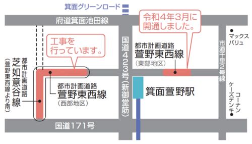 大阪府箕面市発表資料より大阪府箕面市では、都市計画道路萱野東西線(西部地区)・芝如意谷線の供用を開始します。