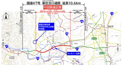国土交通省 東北地方整備局 山形河川国道事務所発表資料より山形県では、国道47号 新庄古口道路の新庄市大字升形~戸沢村大字津間が開通します。これにより新庄古口道路全線が開通します。