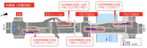 国土交通省 近畿地方整備局 大阪国道事務所発表資料より大阪府では、国道26号の北島交差点~大和川大橋南詰交差点間で順次、各箇所の対策を行なっていた北島局所渋滞対策が全て完了します。