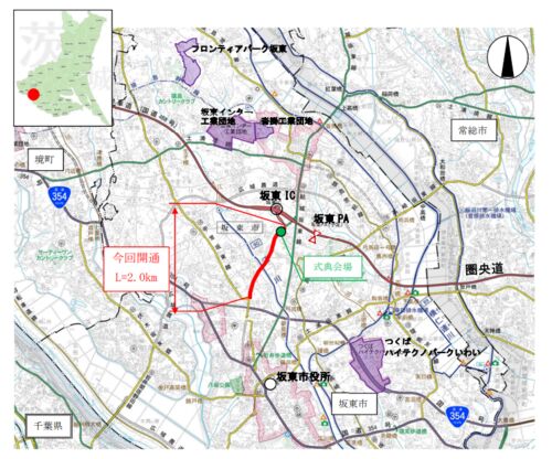 茨城県発表資料より茨城県坂東市では、県道結城坂東線バイパスが開通しました。