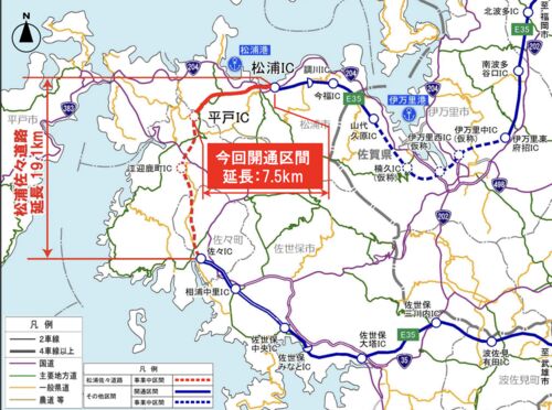 国土交通省 九州地方整備局 長崎河川国道事務所発表資料より長崎県では、西九州自動車道 「松浦佐々道路」の松浦IC~平戸IC間が開通します。