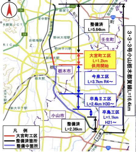 栃木県発表資料より栃木県では、都市計画道路3・3・3号小山栃木都賀線(主要地方道宇都宮亀和田栃木線)栃木市大宮町工区が開通しました。