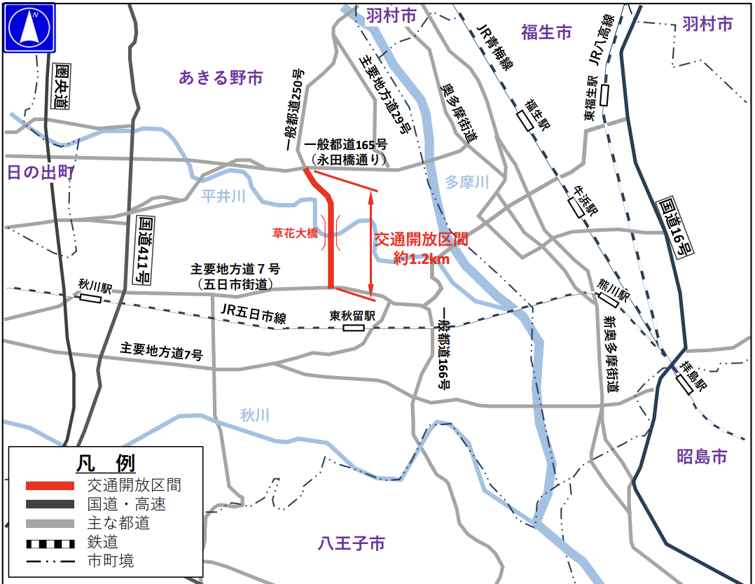 東京都では、 一般都道250号あきる野羽村線が暫定開通しました。